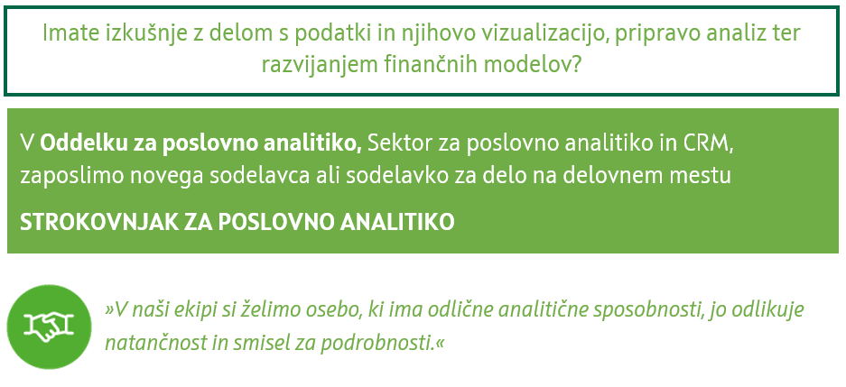 - napredno znanje orodij za analizo in vizualizacijo podatkov (MS Excel, Power BI)