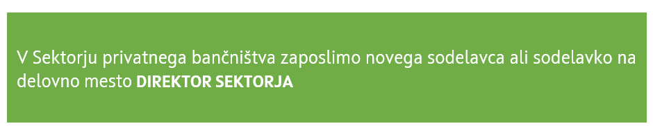 - vsaj 5 let izkušenj s področja privatnega bančništva