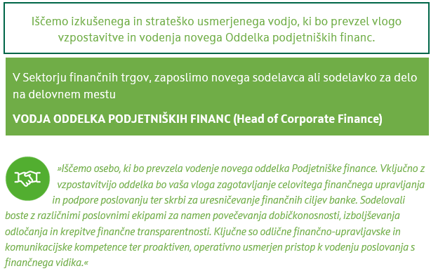 Vodja Oddelka podjetniških financ (Head of Corporate Finance)