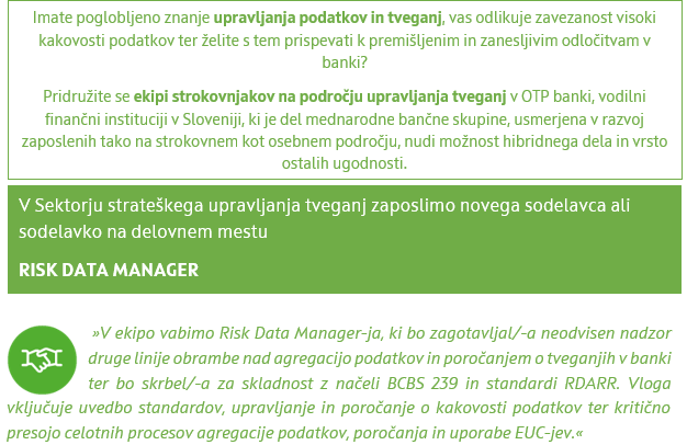 Risk Data Manager v Sektorju strateškega upravljanja tveganj