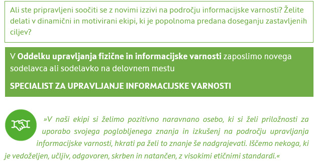 Specialist za upravljanje informacijske varnosti v Oddelku upravljanja fizične in informacijske varnosti