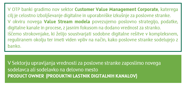 Product owner v Sektorju upravljanja vrednosti za poslovne stranke