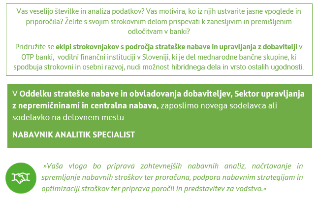 Nabavnik analitik specialist v Oddelku strateške nabave in obvladovanja dobaviteljev